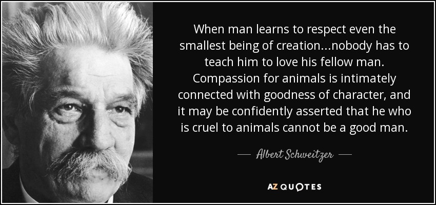 The list goes on and on. I got most of these from a wonderful website called The Gratitude Blog, and I want to thank them for the beautiful images. However, it didn’t touch much on a very precious topic: compassion towards animals. I am a huge follower and believer in judging someone’s character by how they treat animals, to paraphrase Albert Schweitzer. They are the voiceless. They are the innocent. They must be protected. They need love and someone to watch over them, just like every other living being.